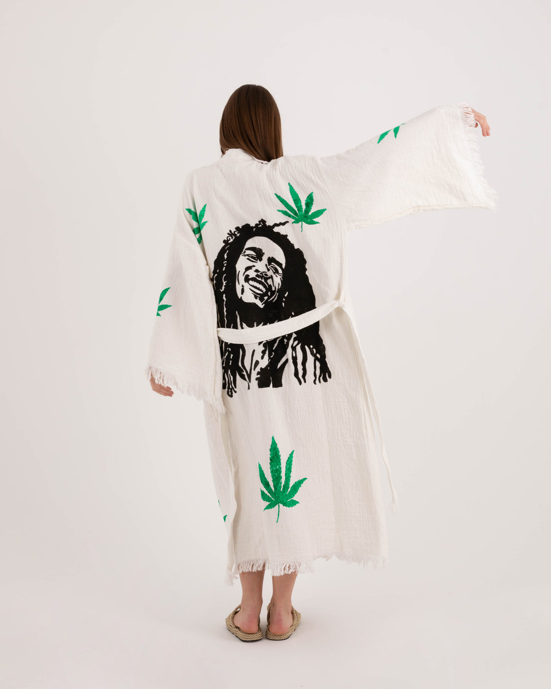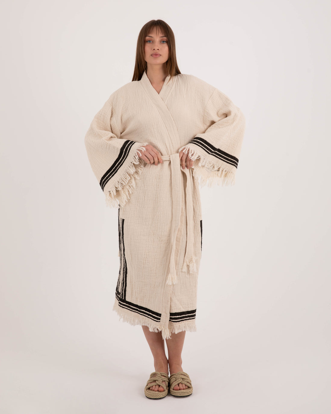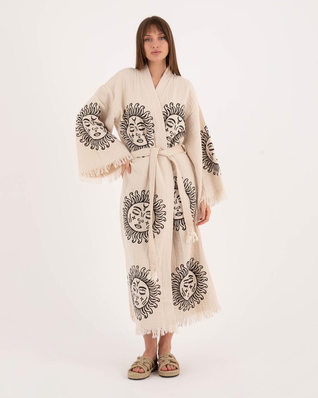 Beige Kimono with Ethnic Deer and Bird Pattern Robe