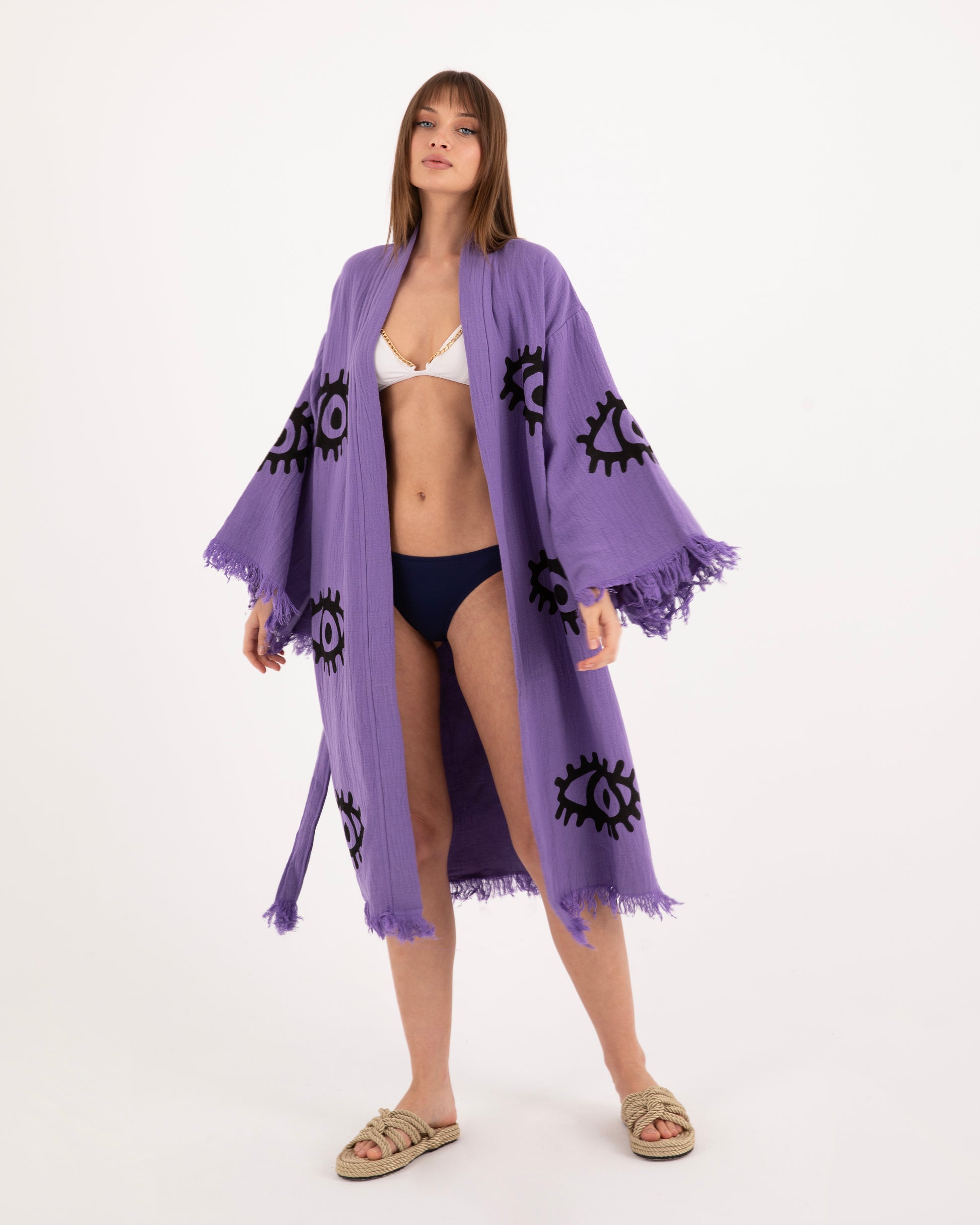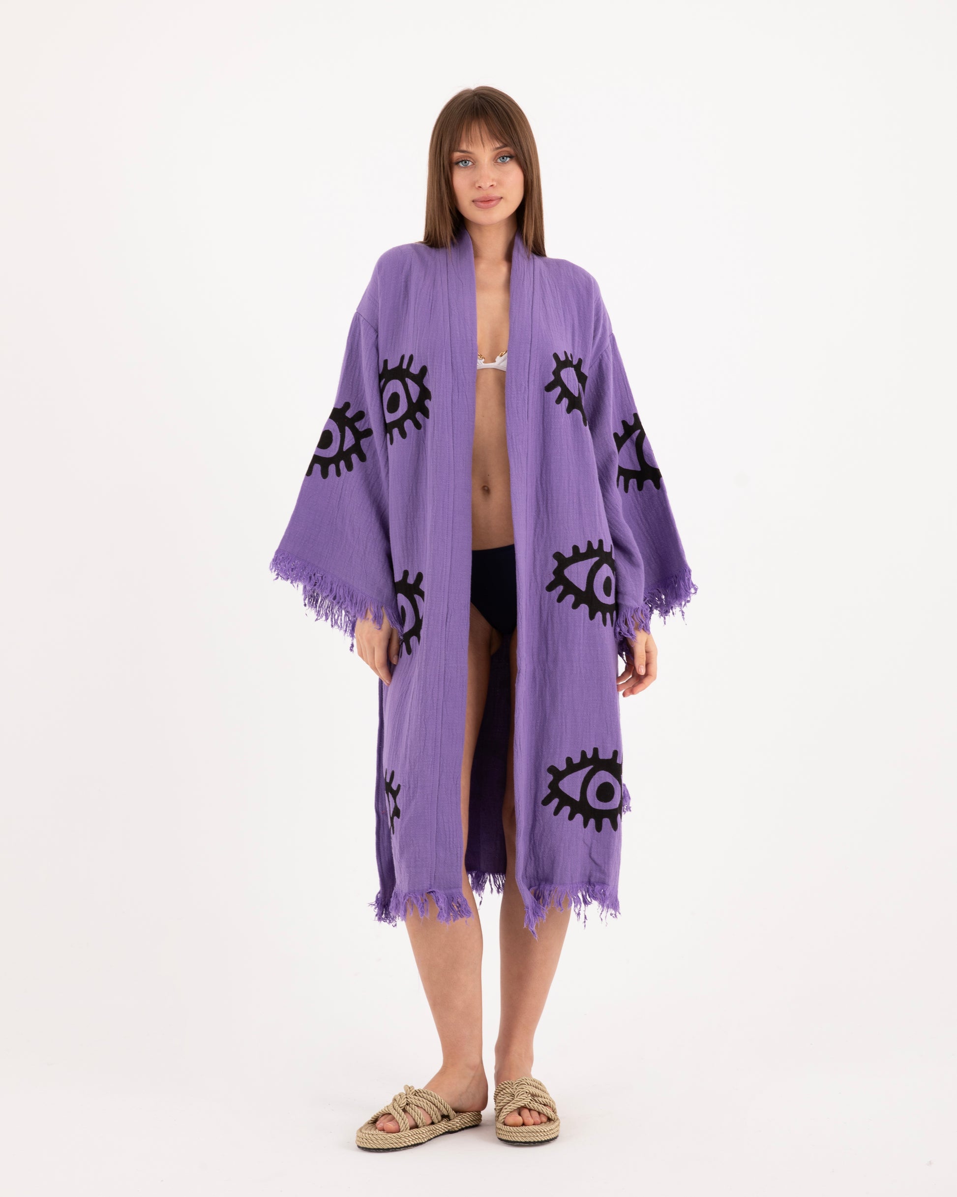 Evil Eye Purple Kimono Robe