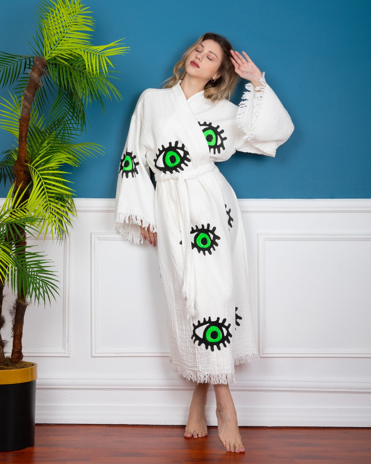 Evil Eye Green Kimono Robe