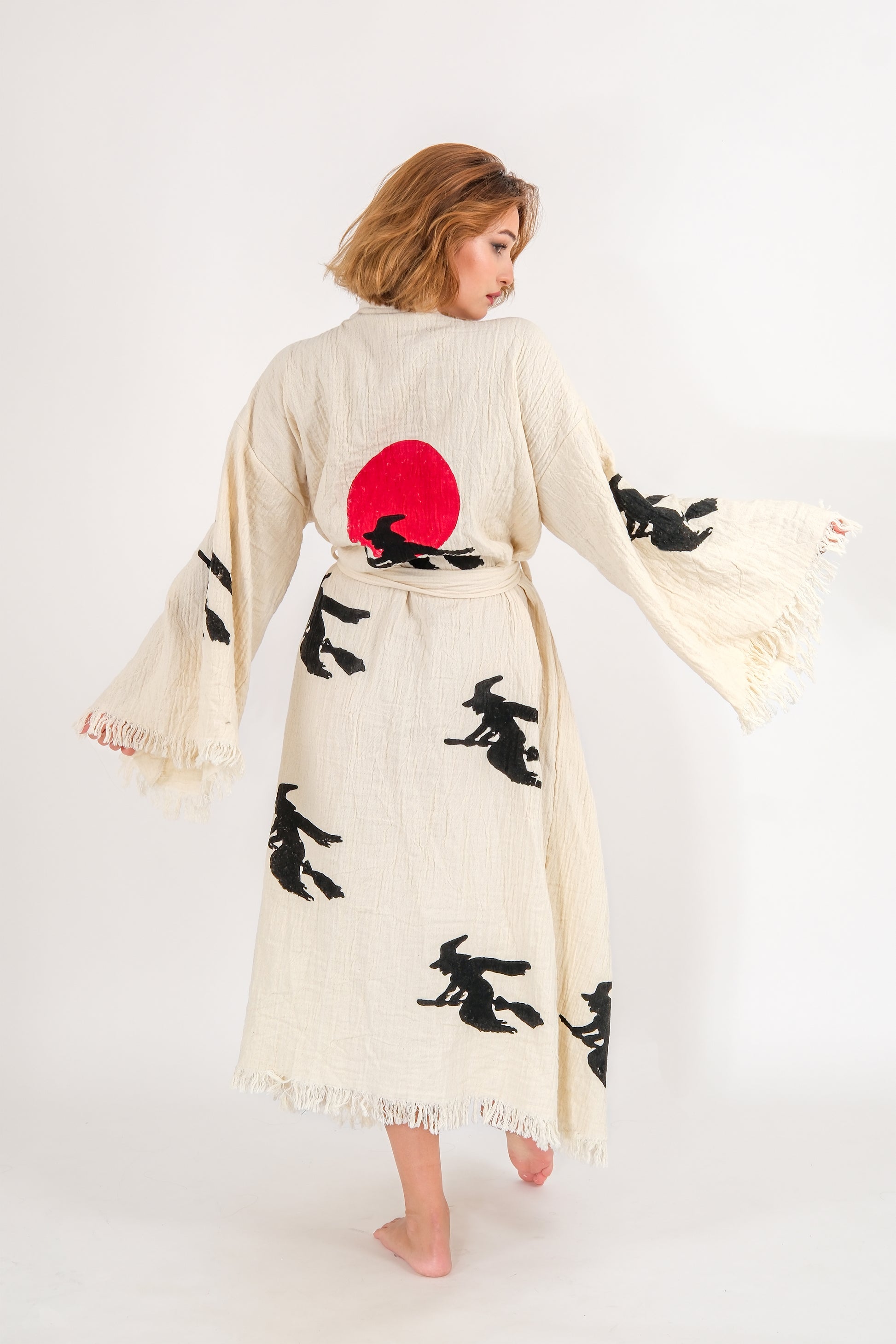 Hallowen Patterned White Kimono
