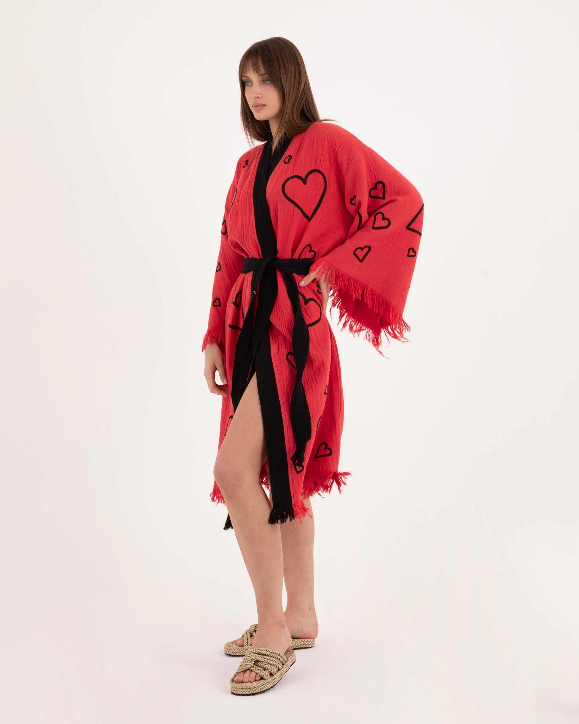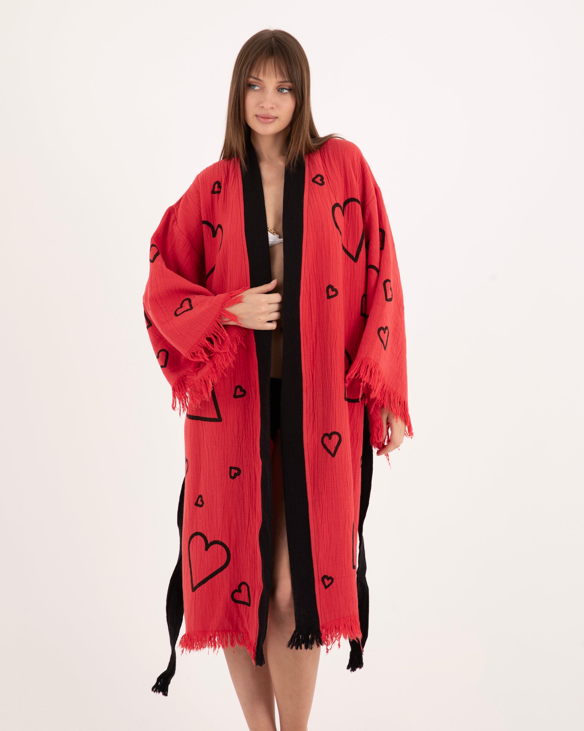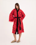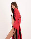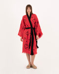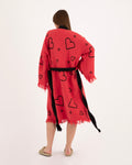 Red Kimono with Black Heart Pattern Robe