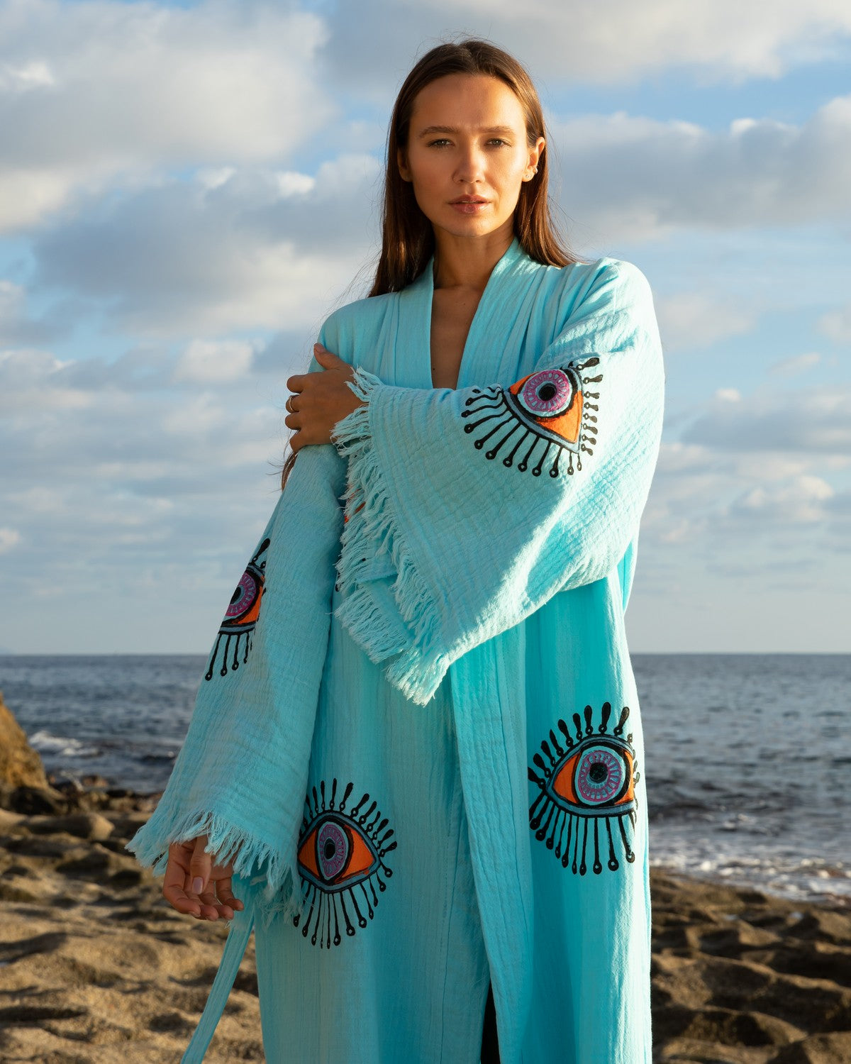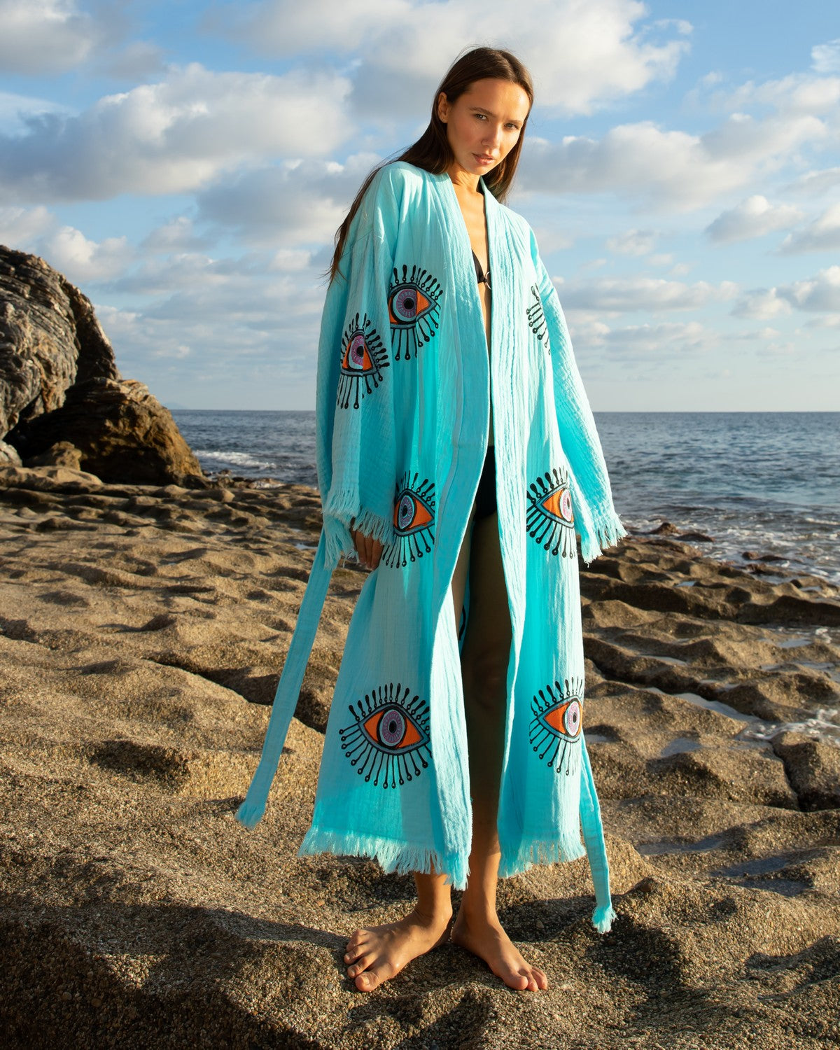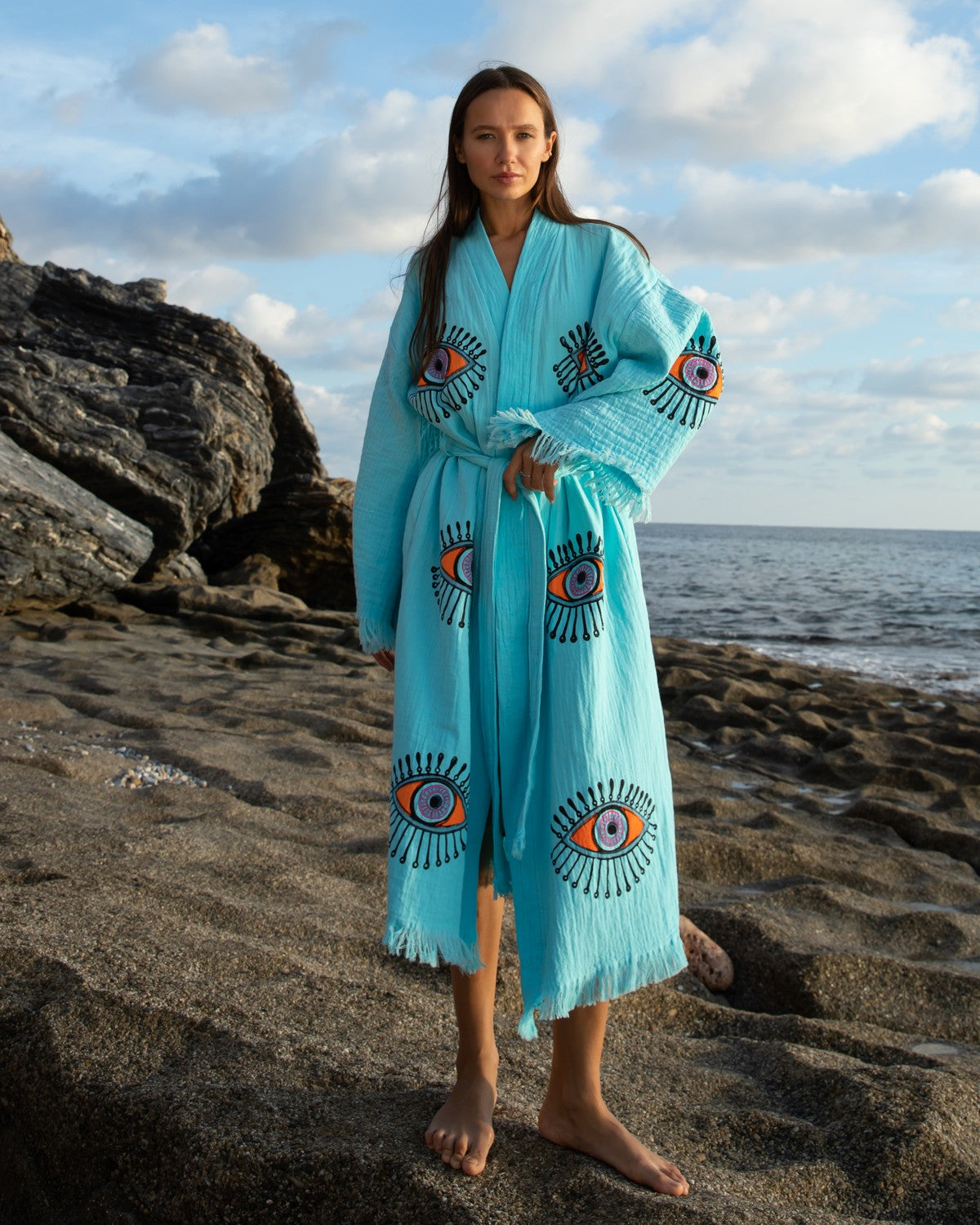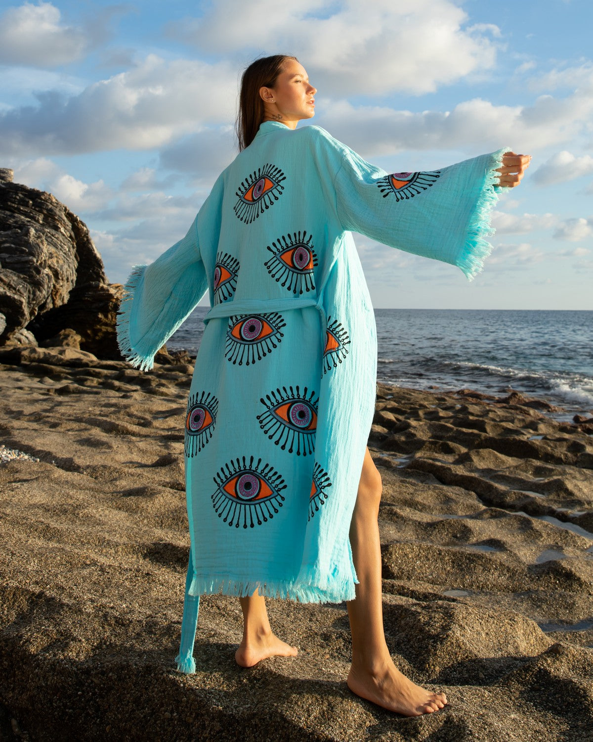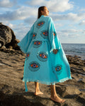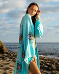 Turquoise - Orange Evil Eye Kimono Robe