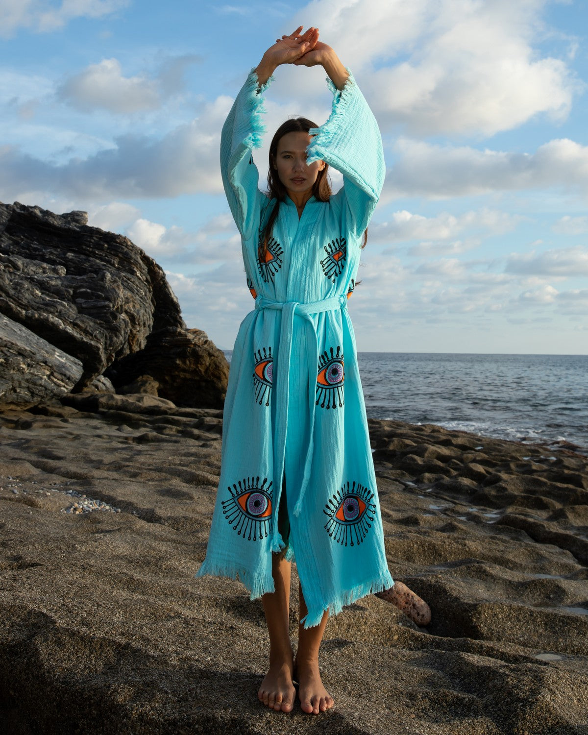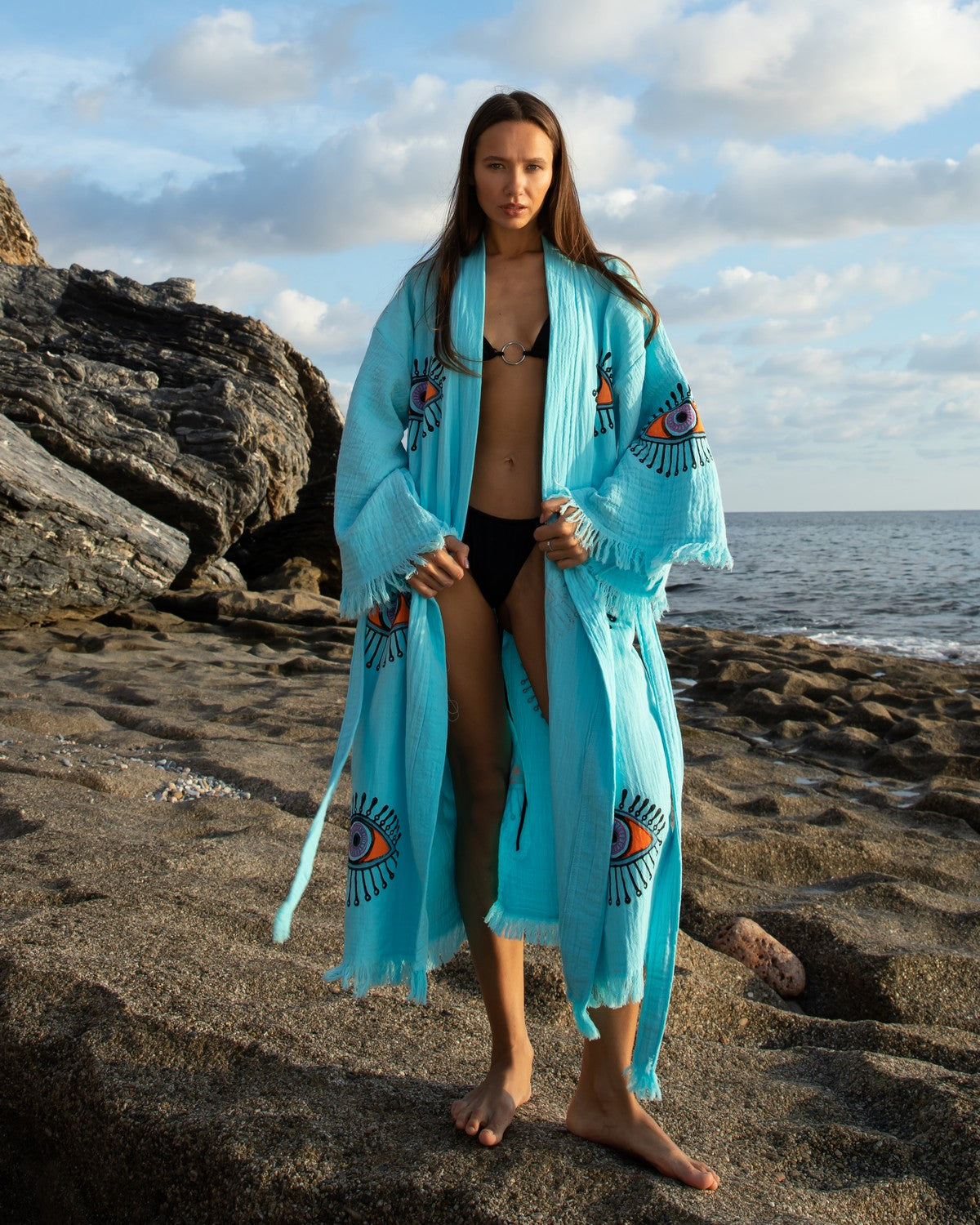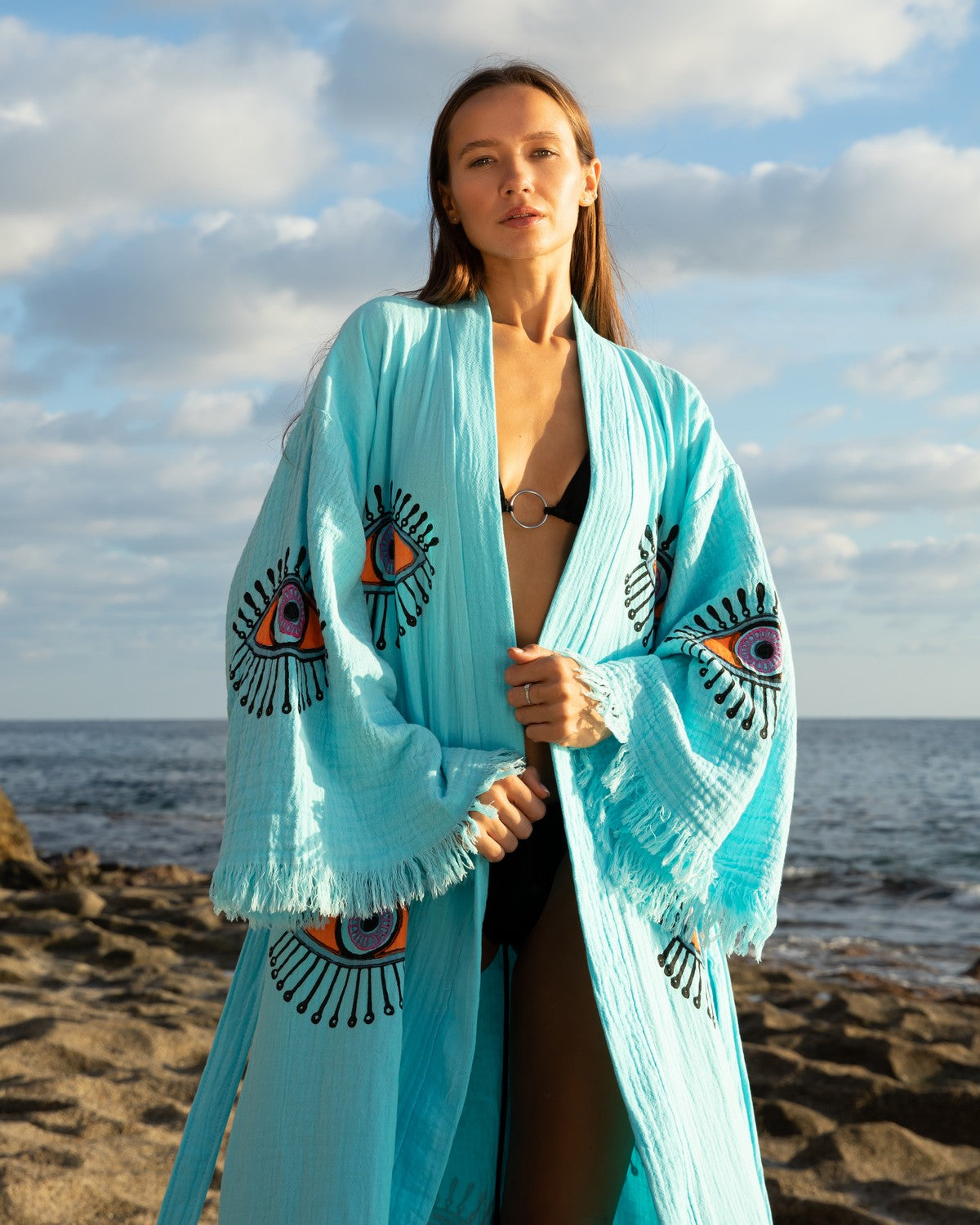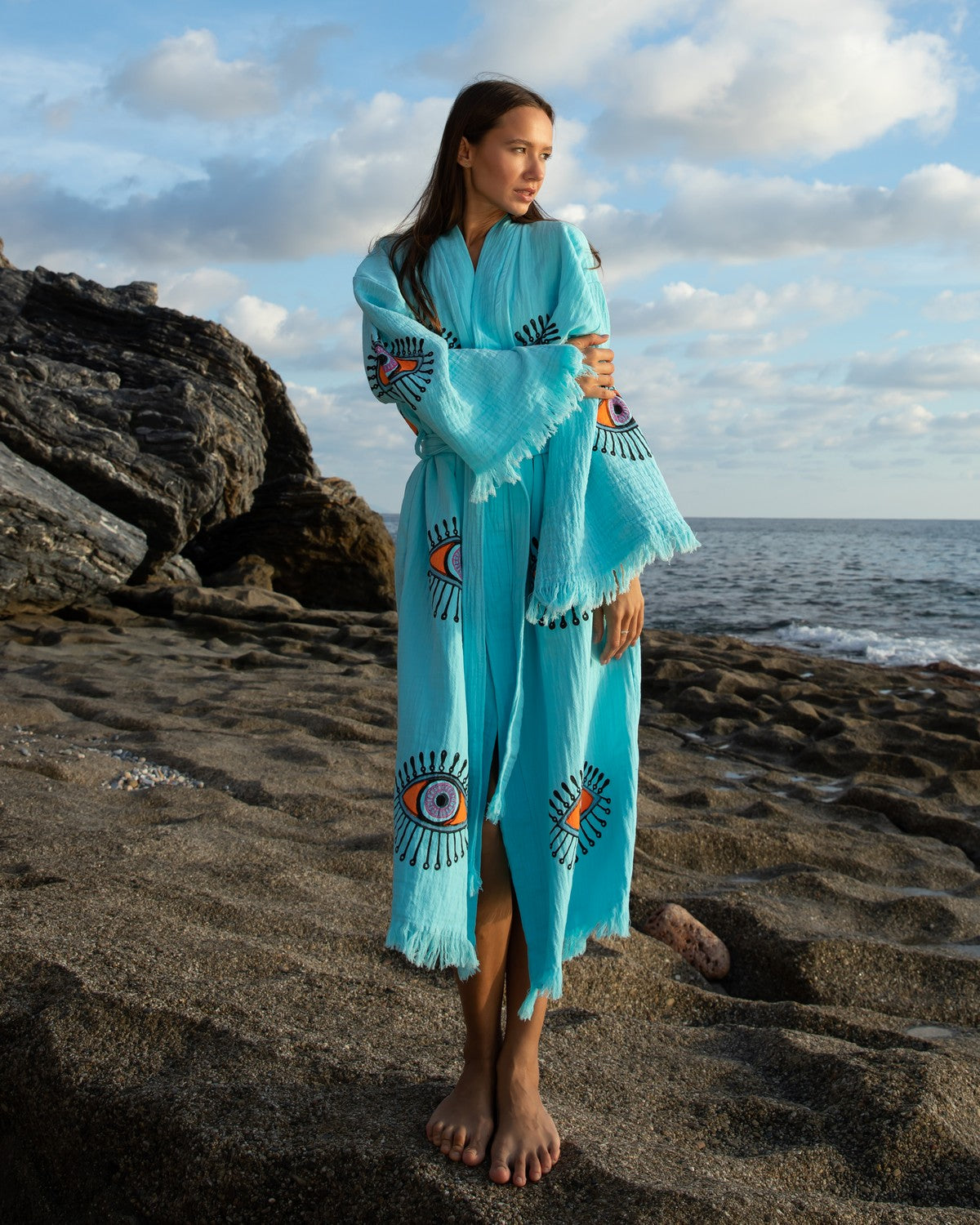Turquoise - Orange Evil Eye Kimono Robe