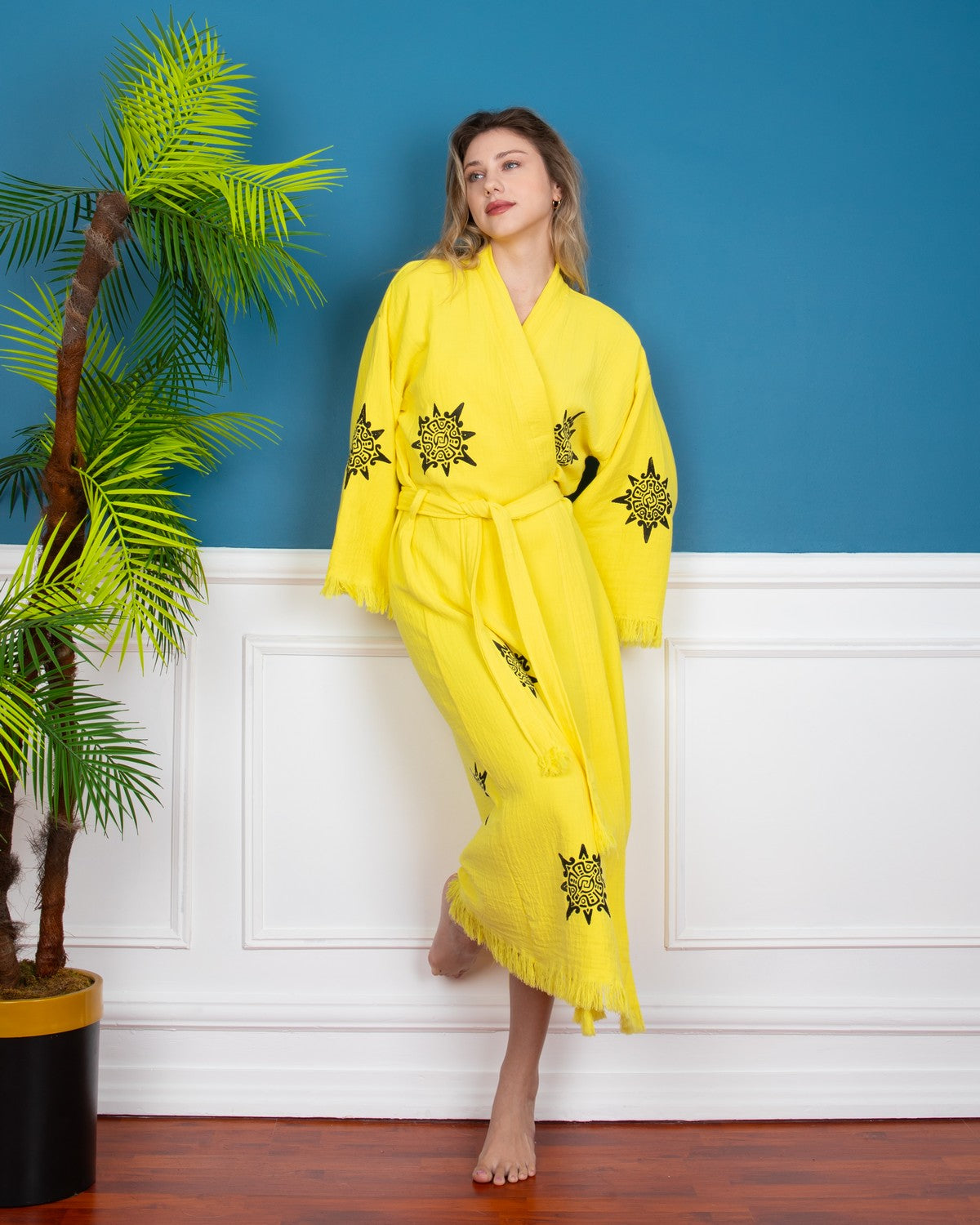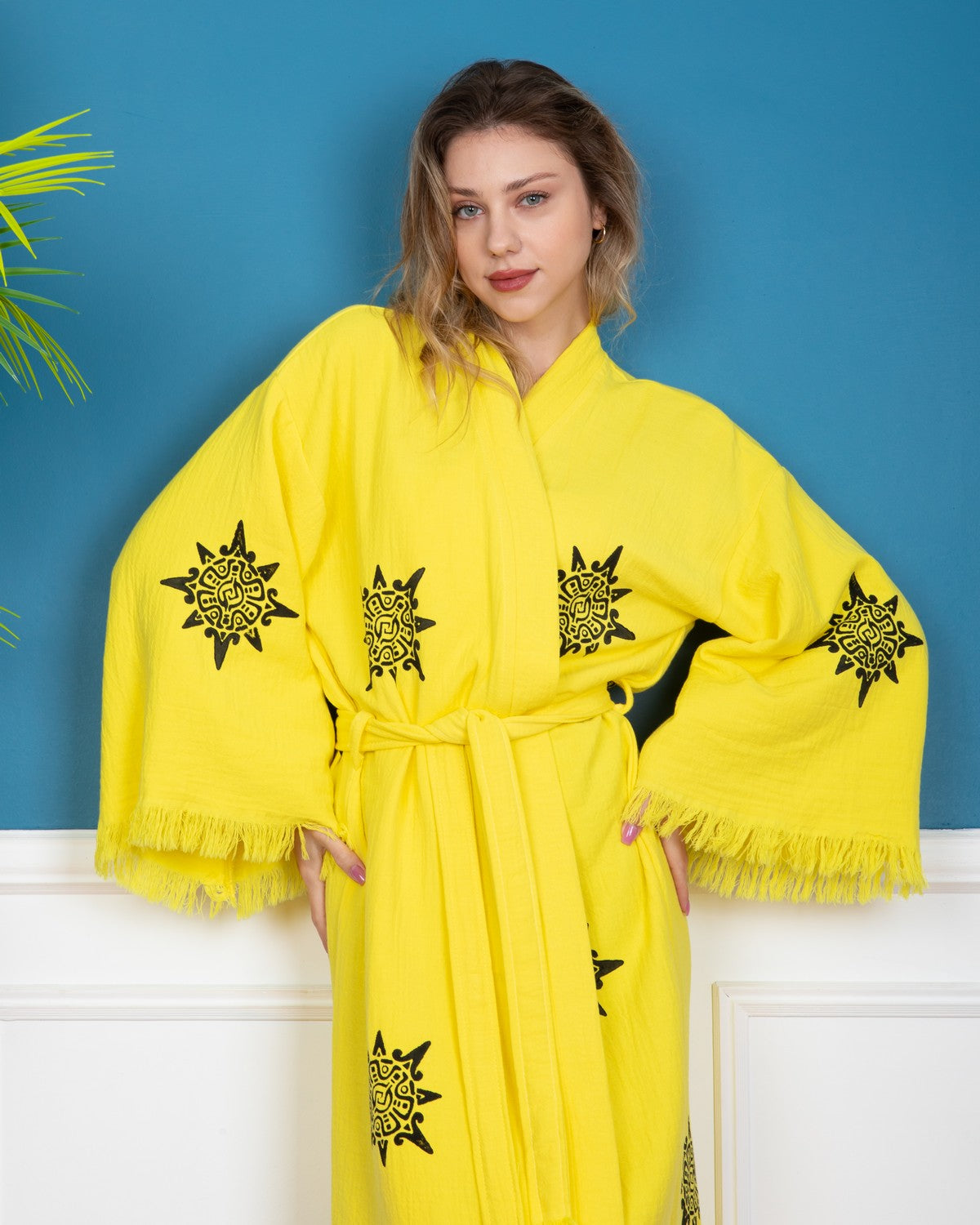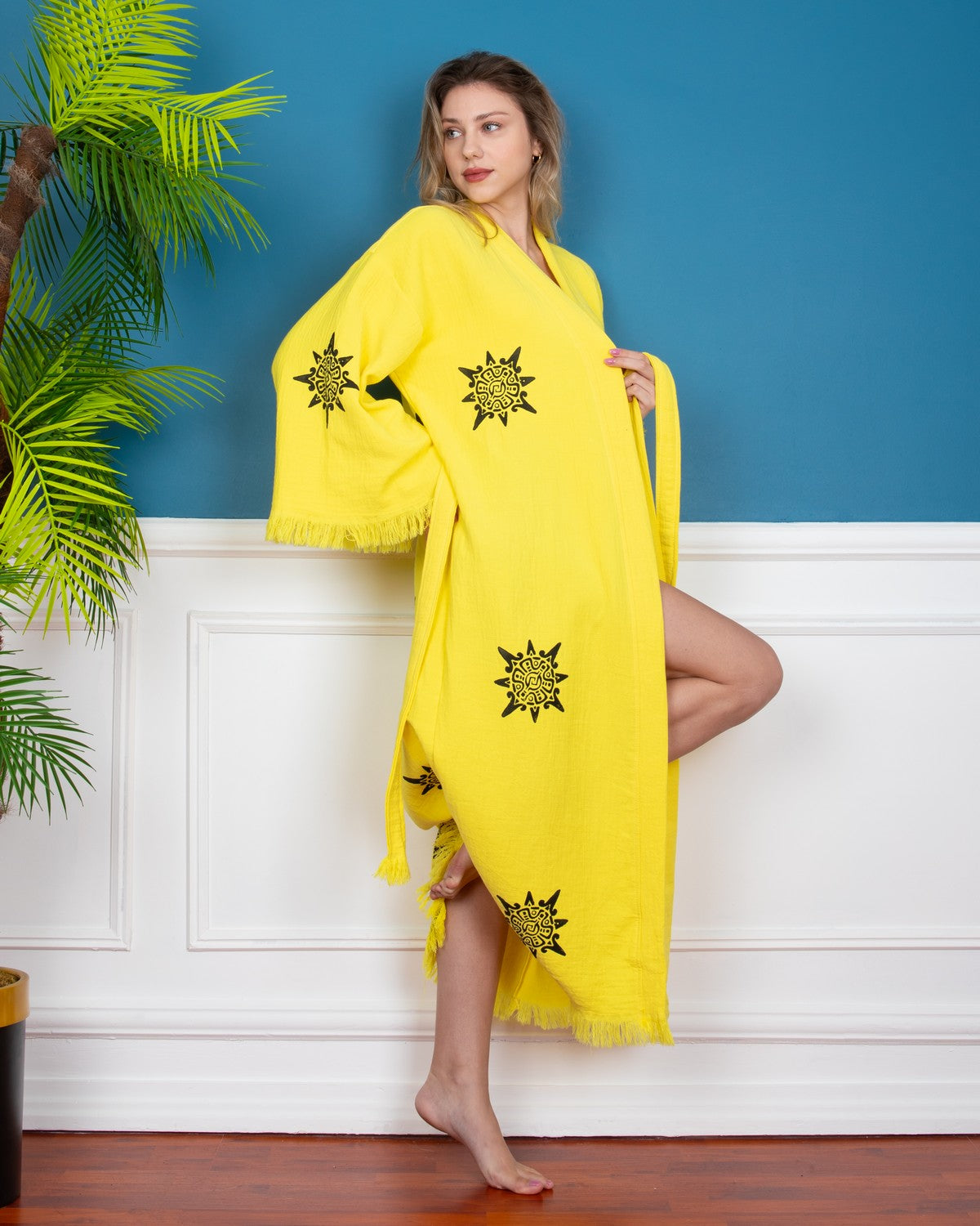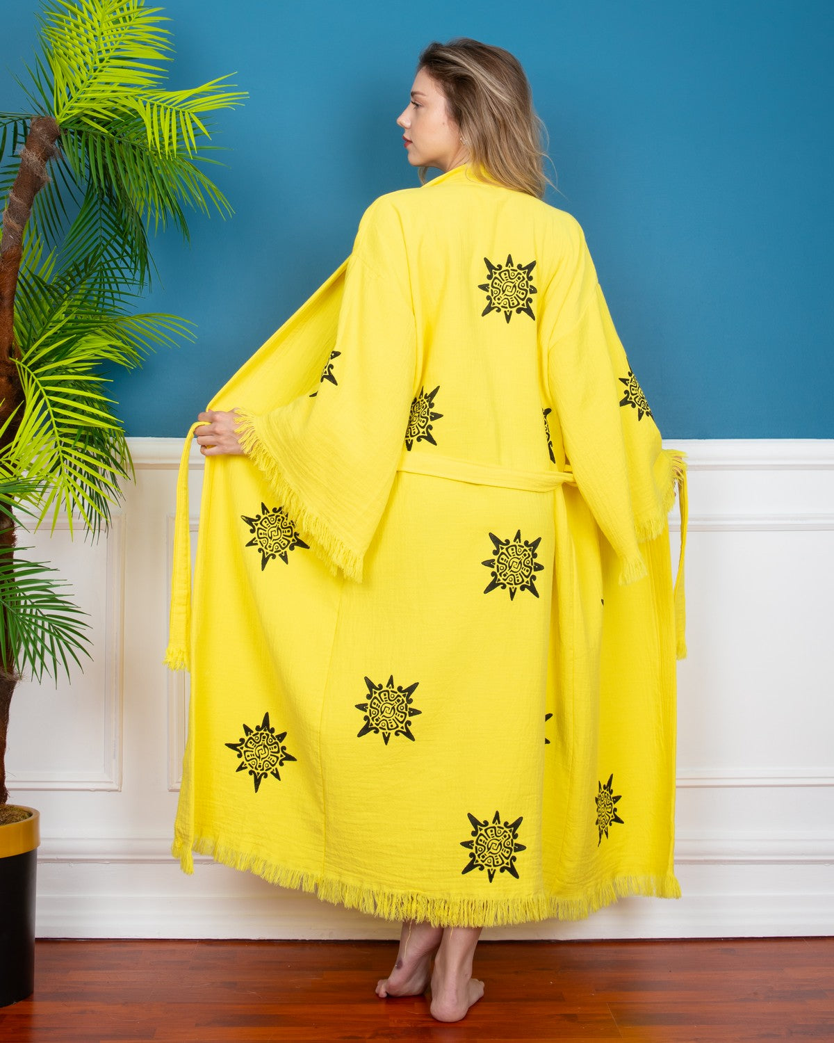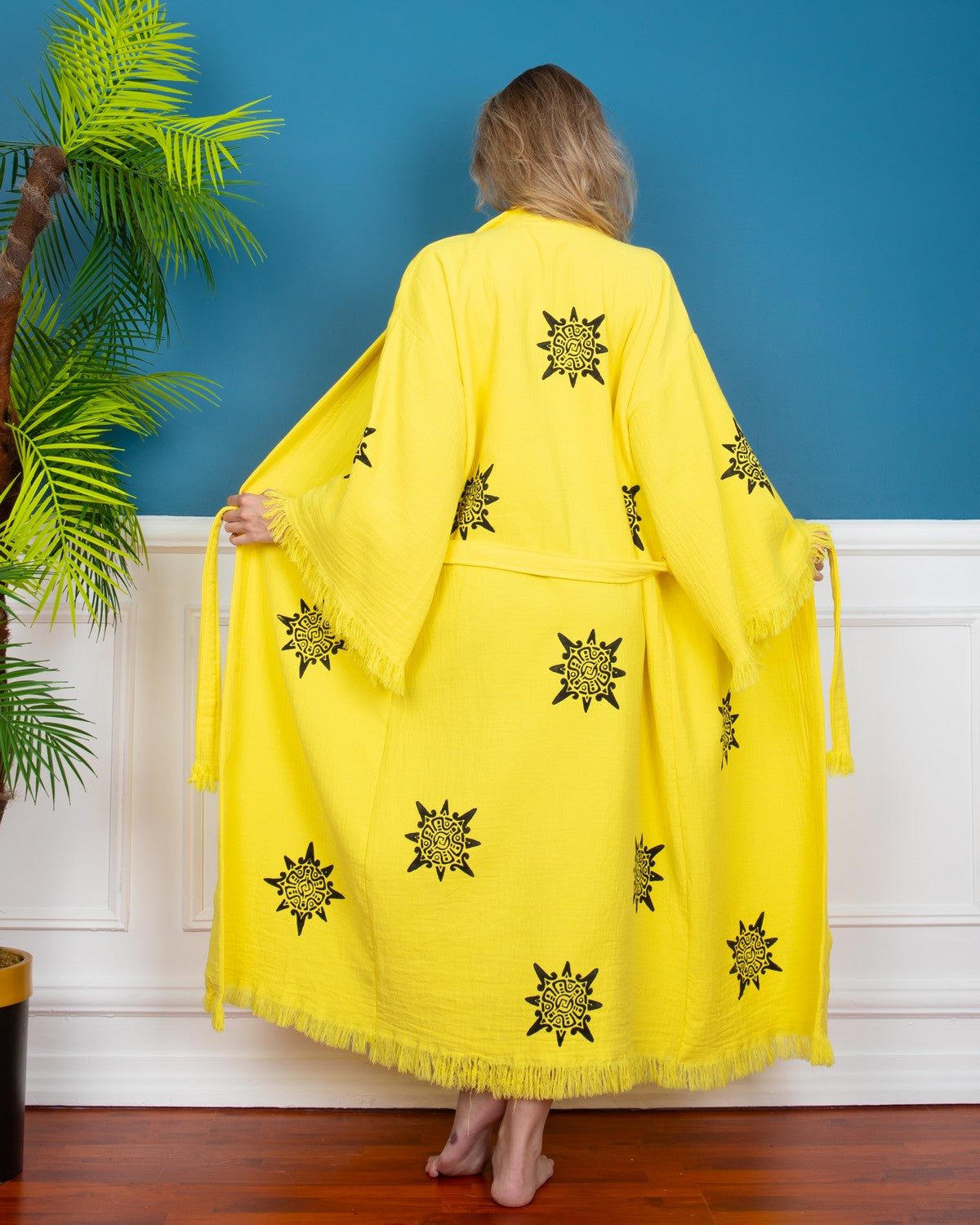 Yellow Wheel of Life Kimono Robe