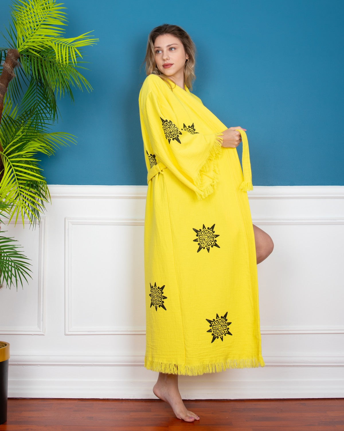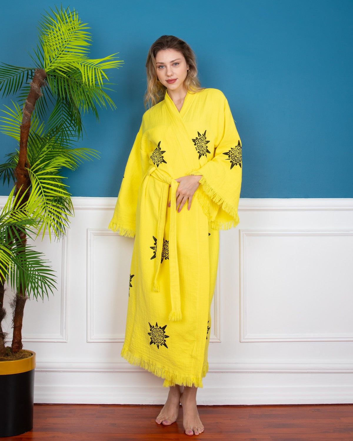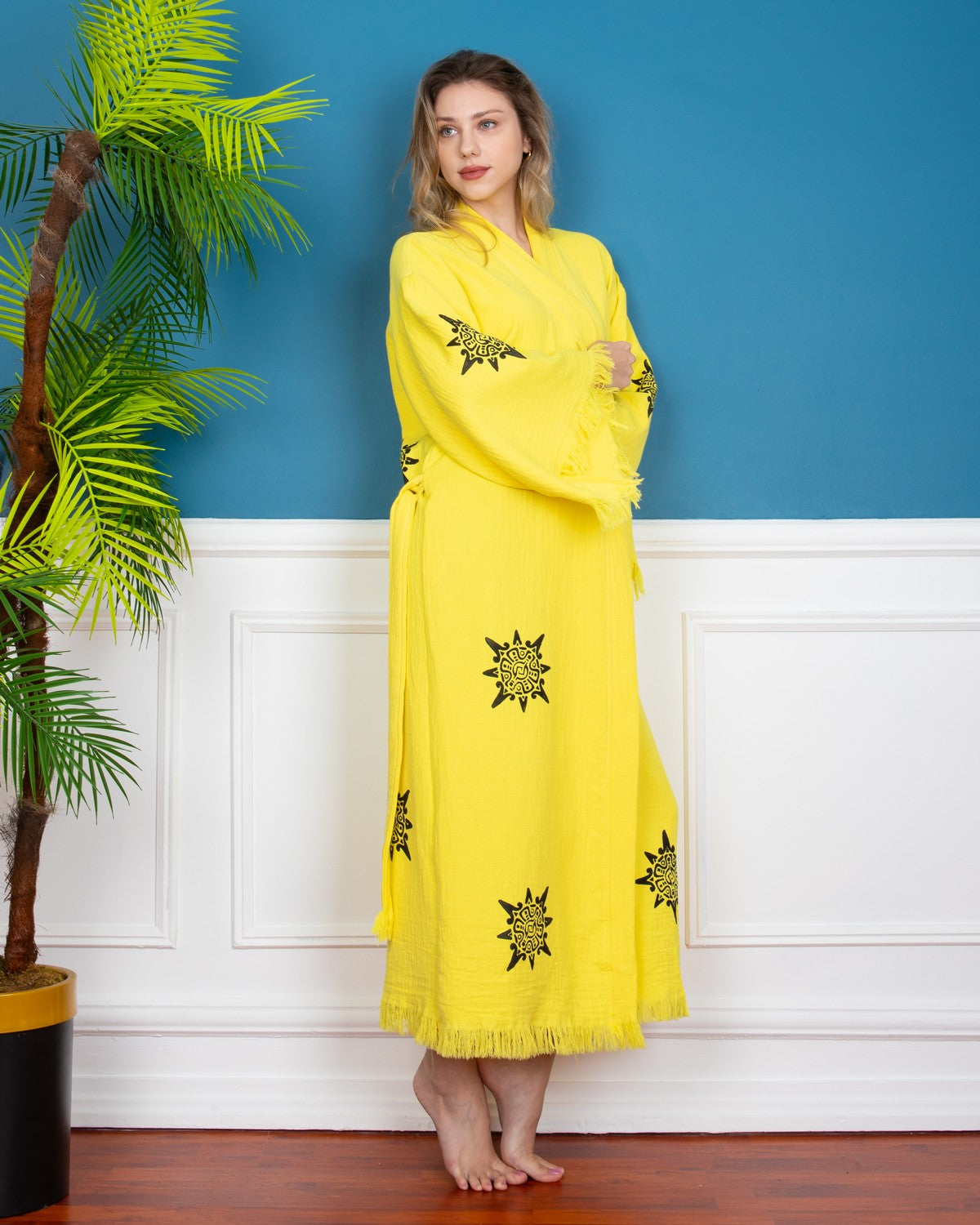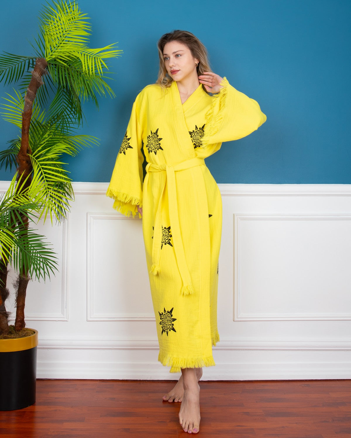 Yellow Wheel of Life Kimono Robe