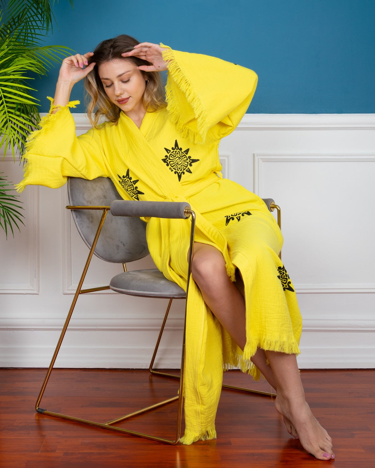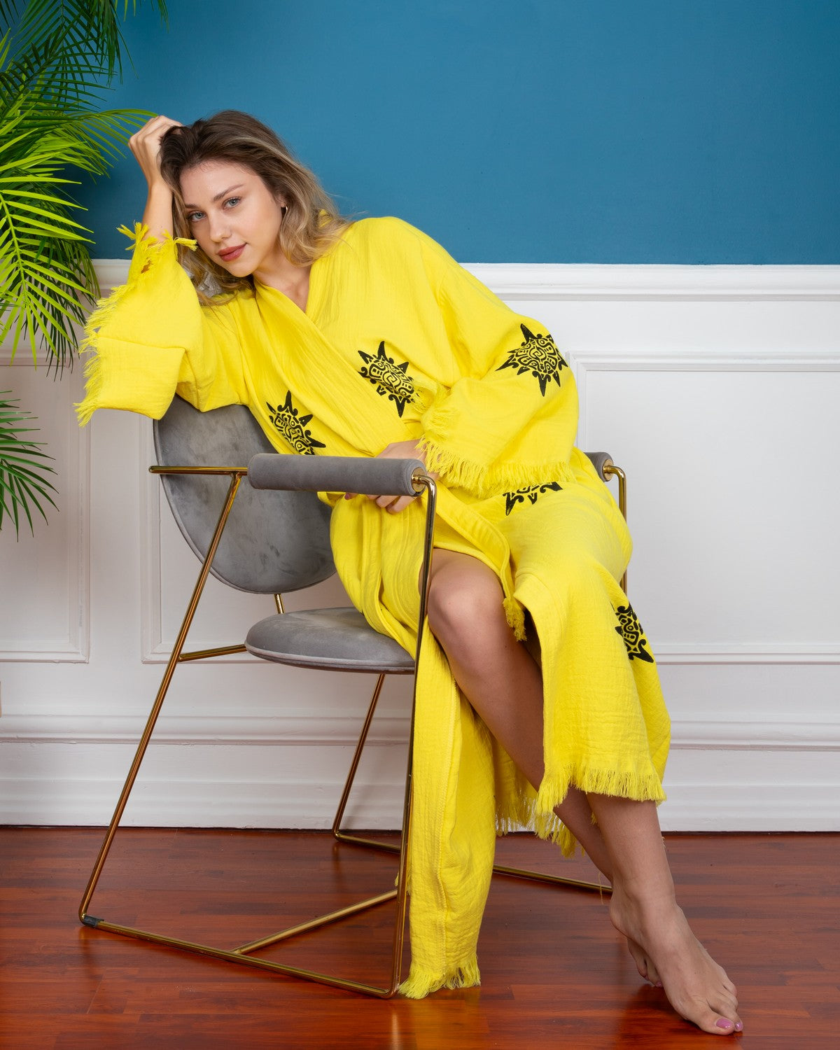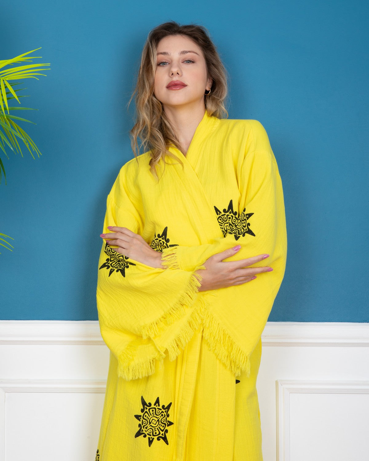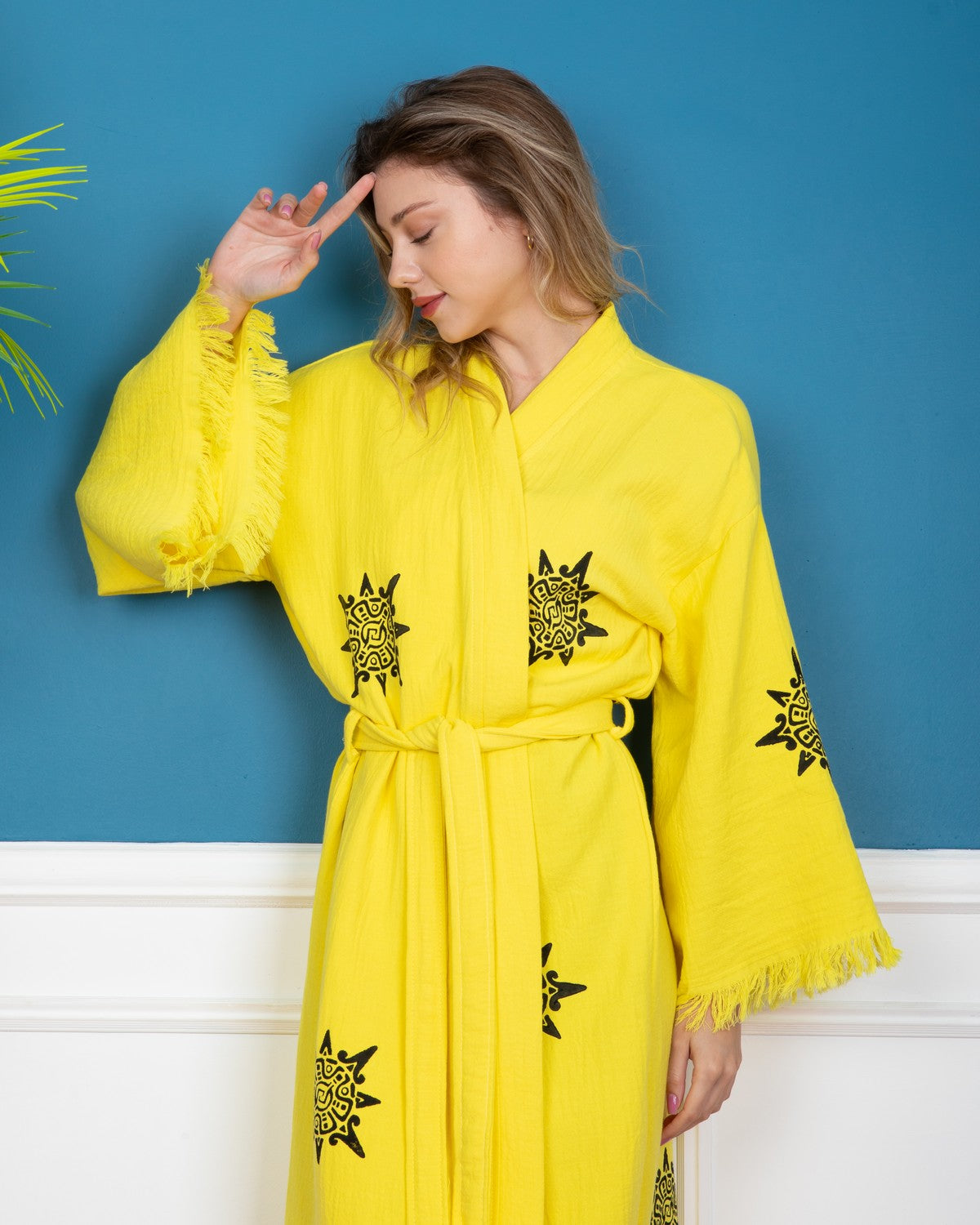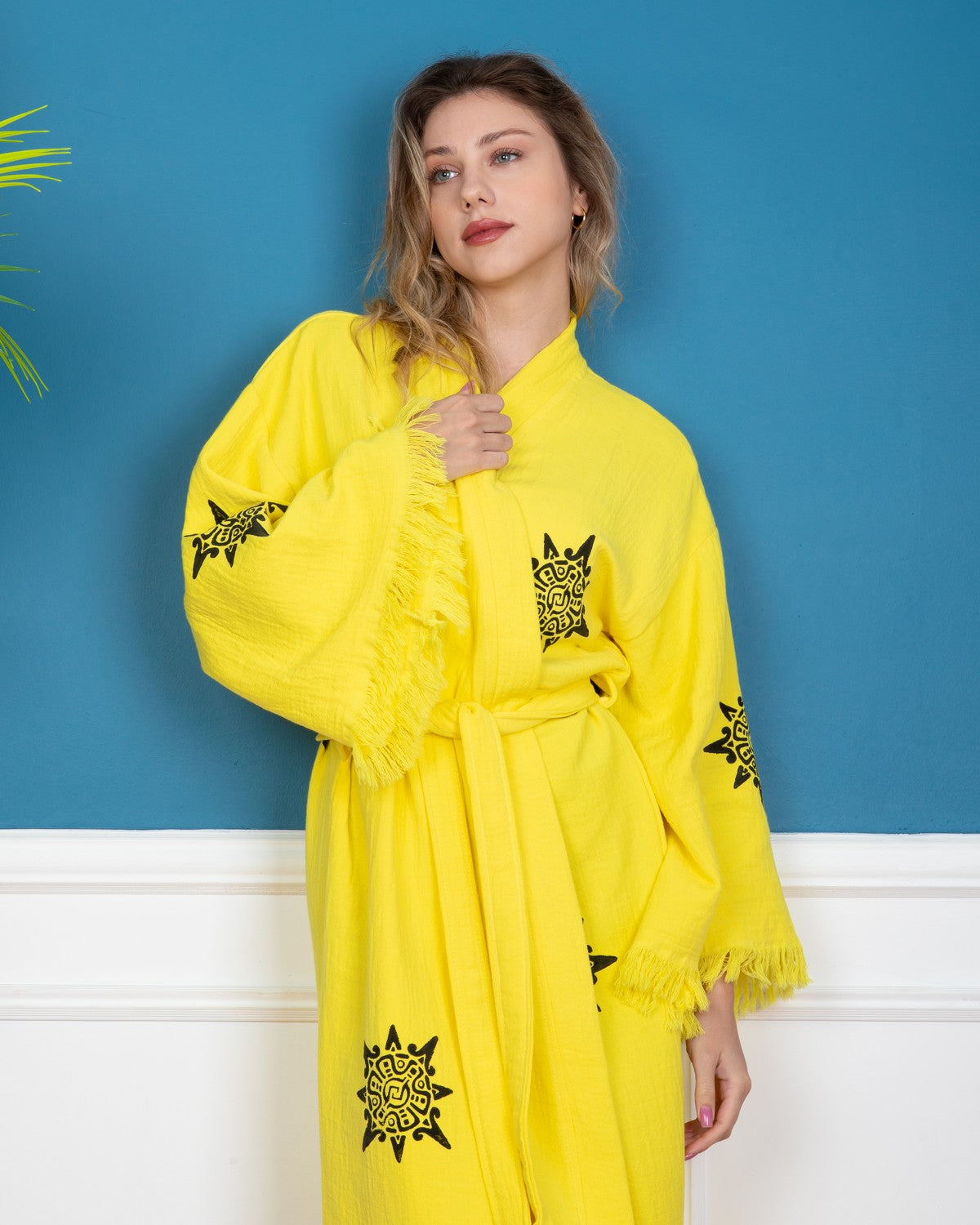 Yellow Wheel of Life Kimono Robe